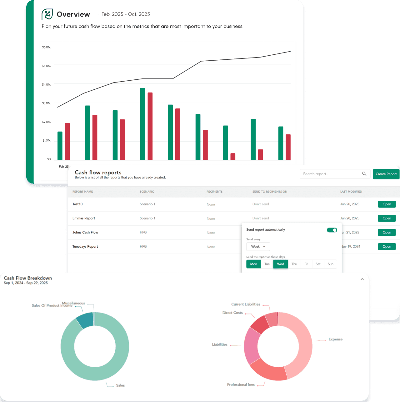 Simulate the cash impact of what-if cash flow scenarios such as changes in staff, inventory and customers.